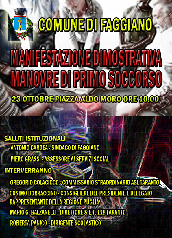 A cura del personale del 118 di Taranto che daranno dimostrazione di come eseguire alcune manovre di primo soccorso